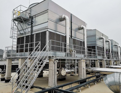 项目说明:阿里巴巴海门数据中心园区计划共建设5栋数据大楼,每台大楼需采购700m³/h开式冷却塔6台,自2019年至2021年,历时3年,完成整个园区A、B、C、D、E五栋楼的建设任务。共采购益美高型号为AT 224-4N18开式冷却塔30台,总水量超过22400m³/h。