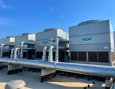 项目说明:2021年开始动工建设,工艺系统采购益美高闭式冷却塔4台(含益美高smart shield固体水处理加药装置),单台水量200m³/h。